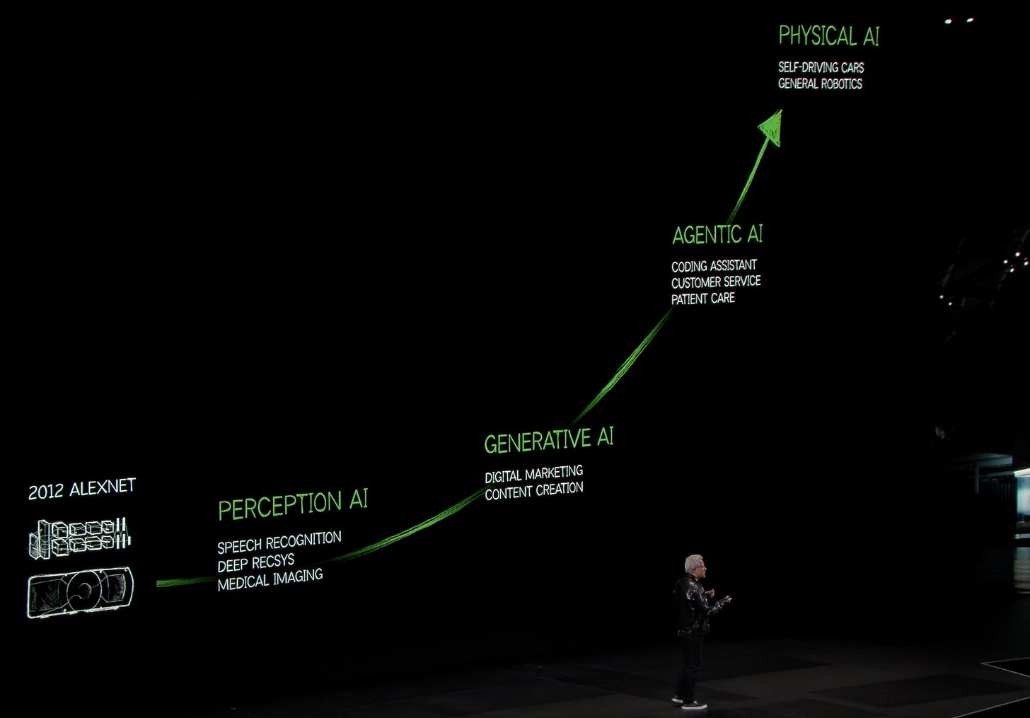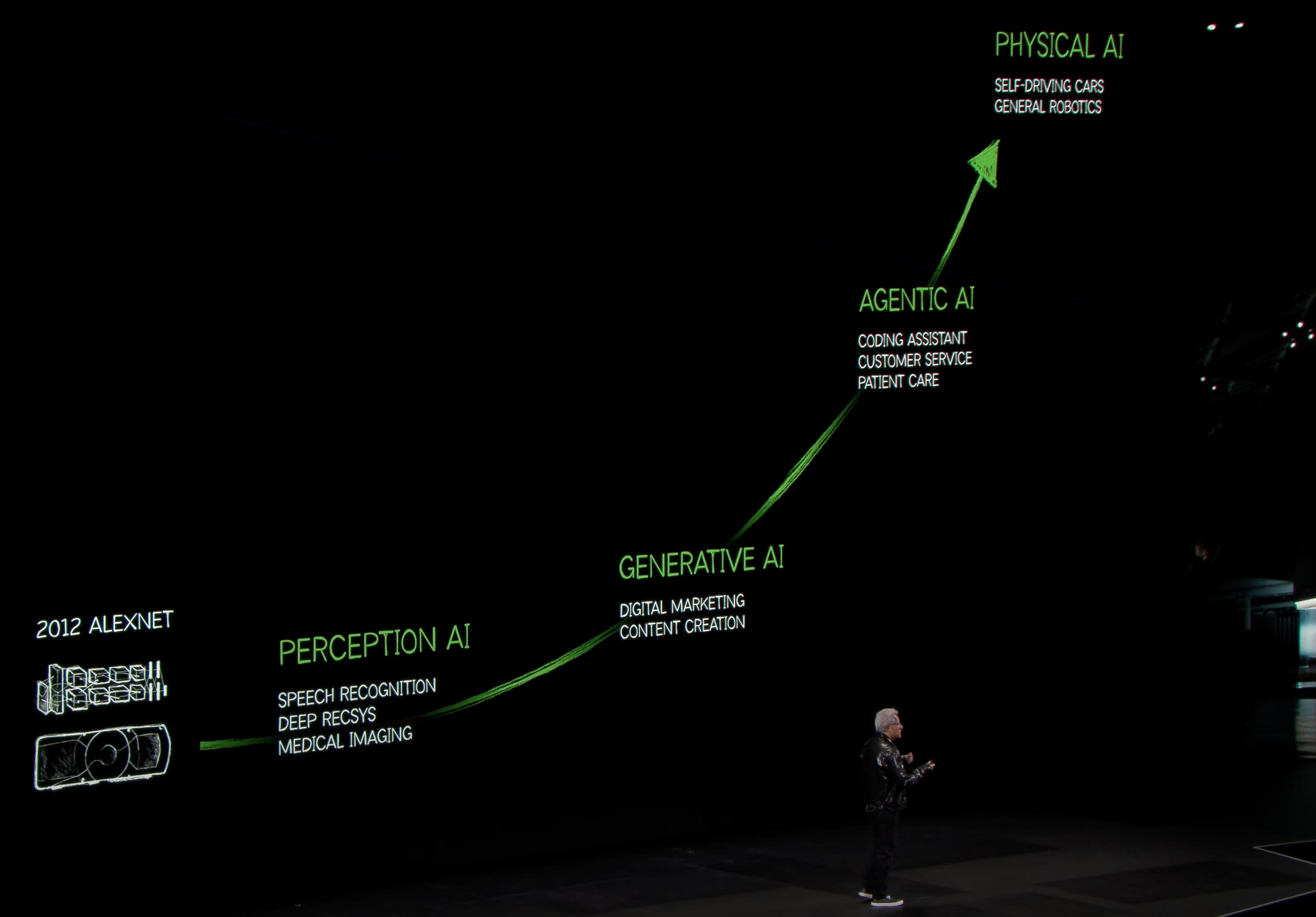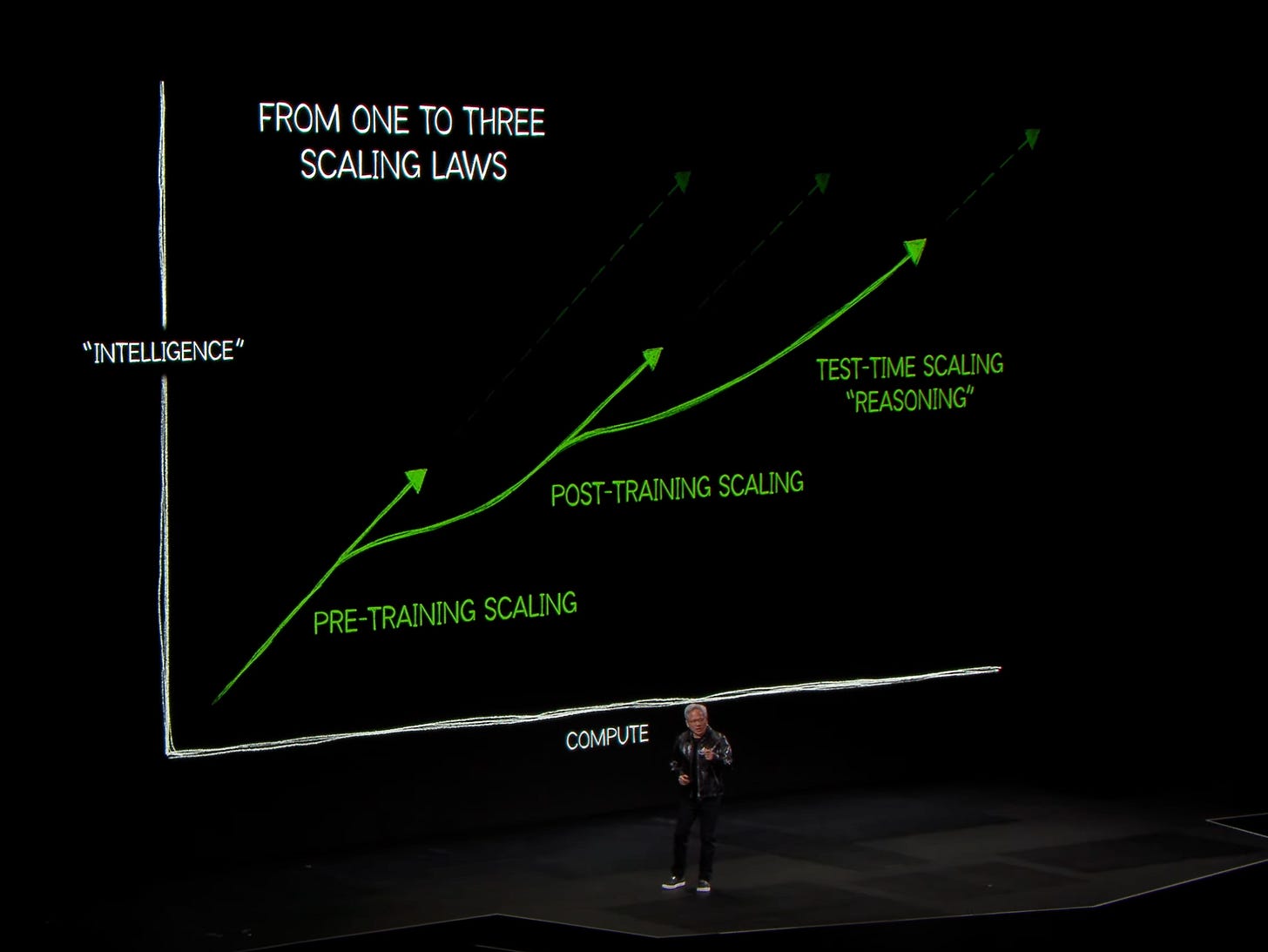 Jensen's message was clear: By scaling up computational power, we can generate more novel intelligence—the world's most valuable asset.