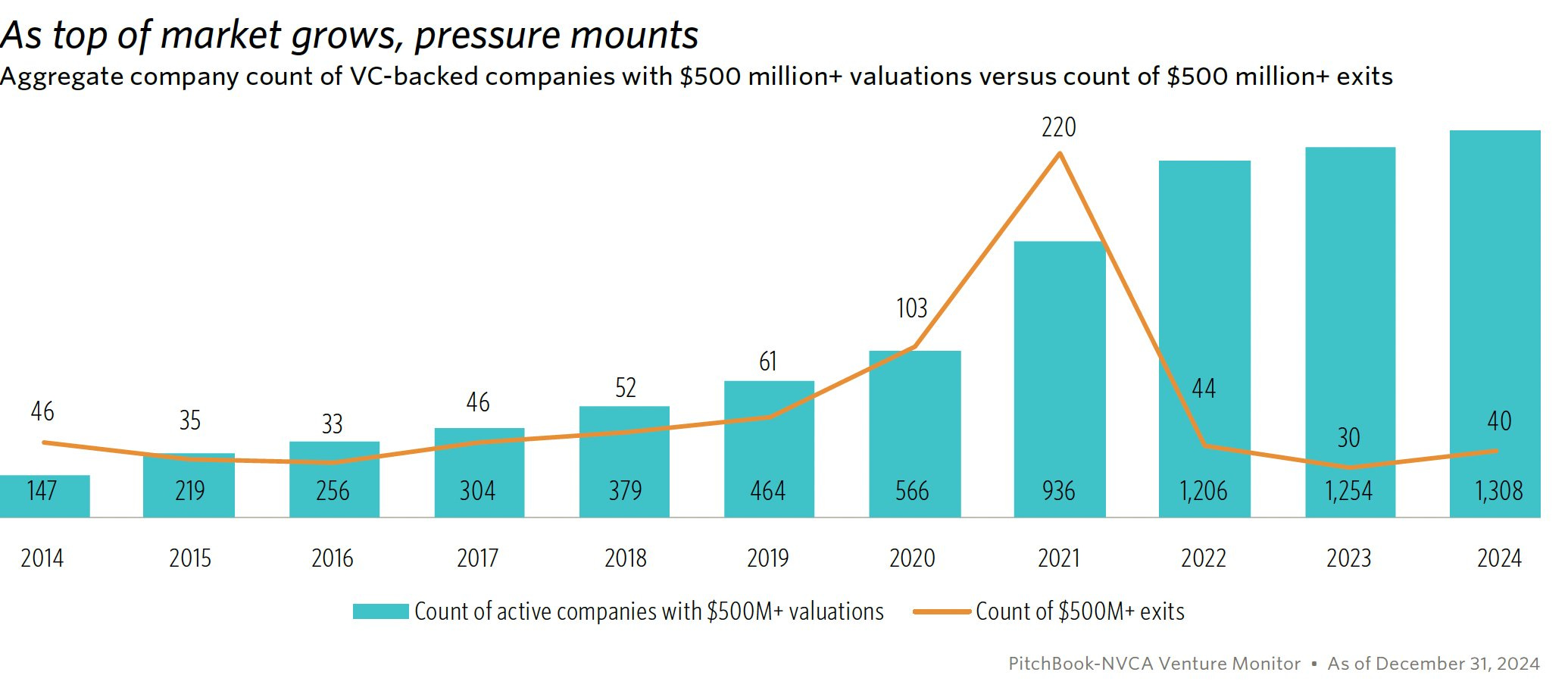 → Why does it matter? There are 1,308 companies today worth more than $500M. Yet in 2024, only 40 of them achieved a $500M+ exit. This chart highlights the stark reality of the power law in venture capital: success isn’t evenly distributed. It’s about being in the right companies at the right time.
