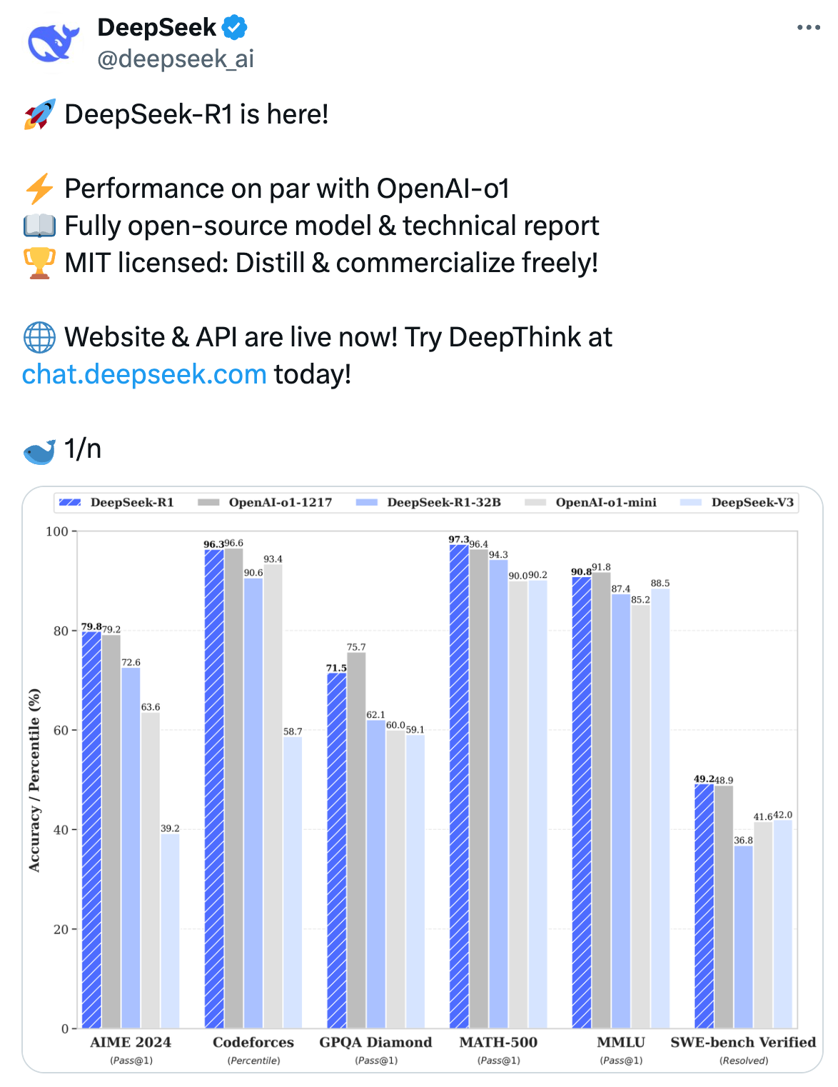 → Why does it matter? Chinese startup DeepSeek has launched DeepSeek-R1, a model that not only rivals but reportedly outperforms OpenAI’s o1 in math and coding tasks. Astonishingly, DeepSeek-R1 is over 27 times more cost-effective and was trained in just two months. Researchers and developers are buzzing with excitement, though they’re reserving full judgment until they can conduct thorough testing themselves.
