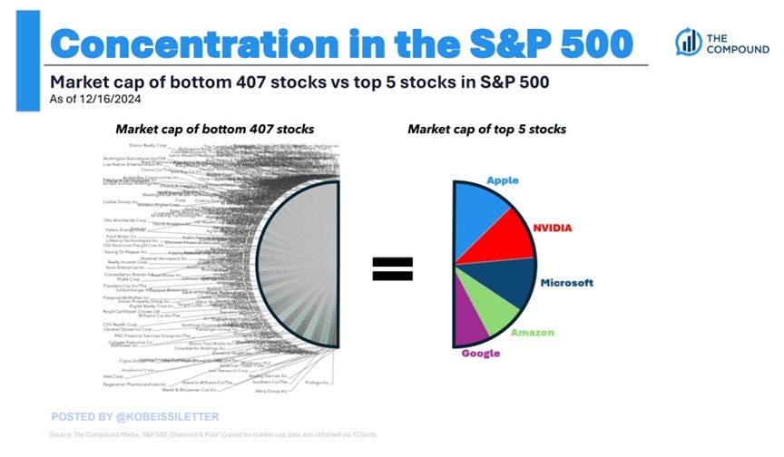 → Why does it matter? The market cap of the S&P 500’s top 5 stocks is now equal to the size of the bottom 407 stocks. These 5 stocks are worth now nearly as much as China and Hong Kong's stock markets combined!
