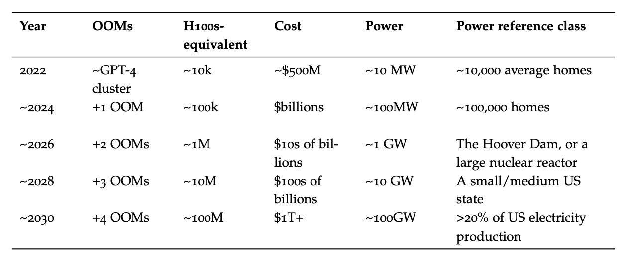 Powering AI clusters and data centers will require enormous amounts of energy. How much energy are we talking about? According to Leopold Aschenbrenner, an ex-OpenAI researcher, a lot. By 2030, if we see another leap in AI capabilities akin to the jump from GPT-2 to GPT-4, we’re looking at a +4 orders-of-magnitude increase in compute power.