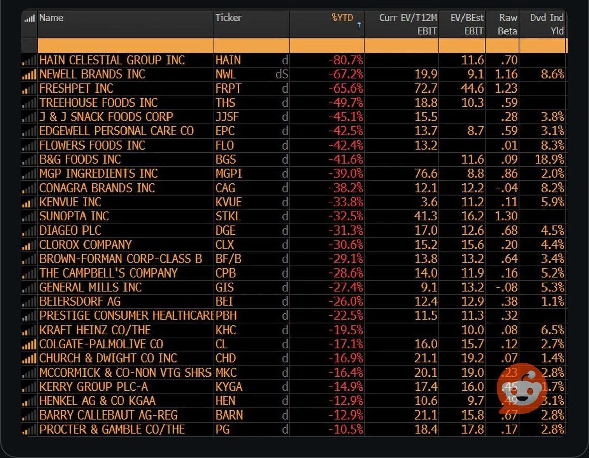 4/ Quality stalwarts like Clorox, General Mills, and Kraft Heinz are down a lot this year.