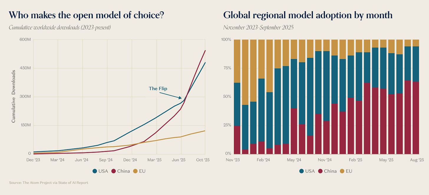 → Why does it matter? Downloads of Chinese open-source models have now surpassed those of their US-developed competitors. And while OpenAI has released an open-source variant of their models, their SOTA still remains closed.