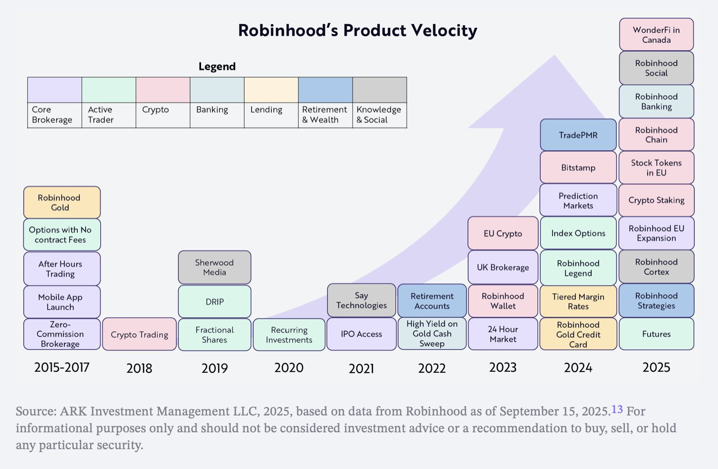 → Why does it matter? The bull case for Robinhood is that each generation gets its own Charles Schwab, and Robinhood is it for Millennials and Gen Z. This chart is clear evidence of all the new products and services they’ve launched. The question is: will you trust Robinhood with your long-term financial wellness? Will they accrue that critically important “trust” factor to their brand?