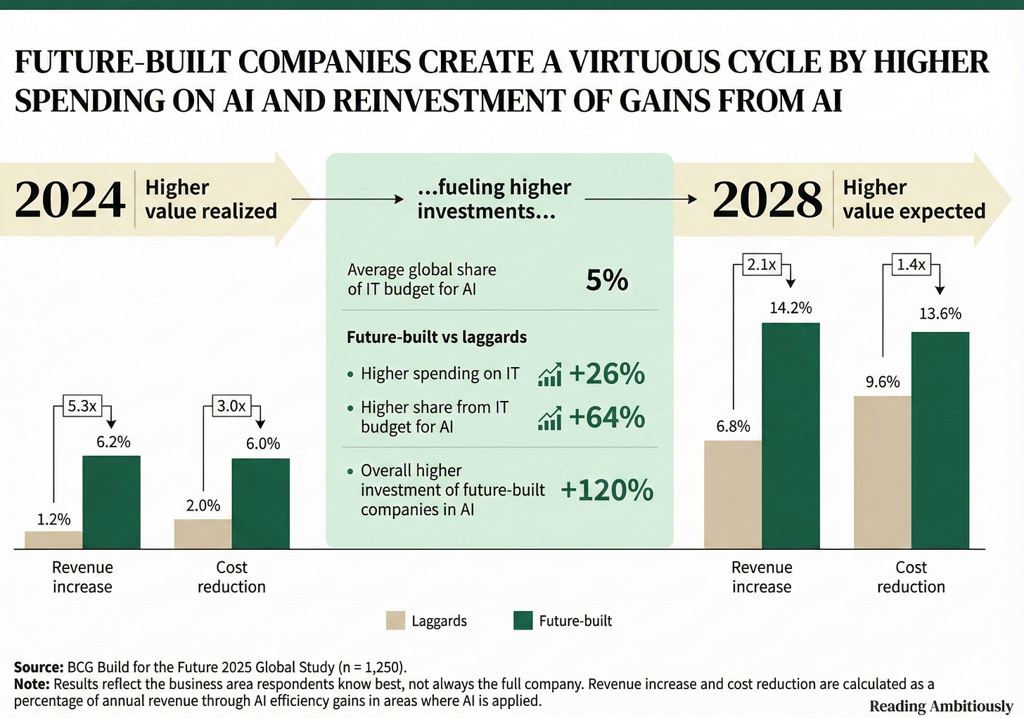 AI is creating a widening gap between companies that experiment and companies that meaningfully change how work gets done. The gap is not theoretical. A recent BCG study, “The Widening AI Value Gap,” found that early adopters are seeing more than five times the revenue growth and three times the cost reduction compared to their peers. The difference is not the model they chose or which vendor they prefer. It is whether they were capable of changing how their people work.