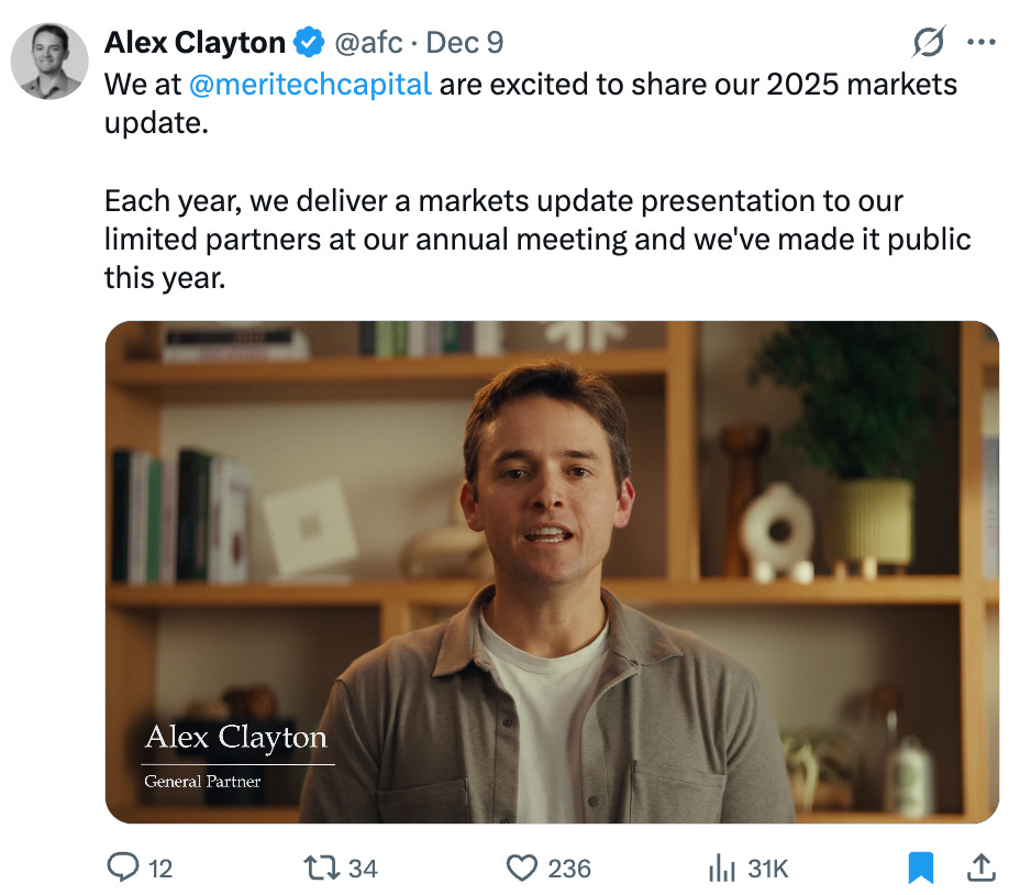 → Why does it matter? Meritech Capital produces some of the most insightful research on cloud software. For the first time, they are sharing their 2025 market update, which they usually reserve for investors, with everyone. Worth a watch.