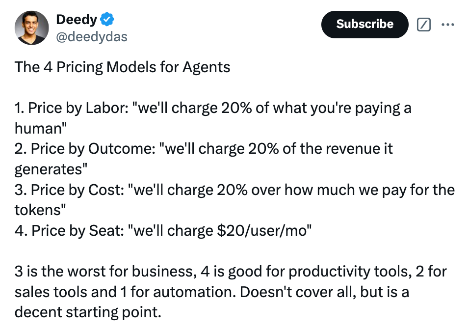ā Why does it matter? Disruptive tech brings disruptive business models. The big question: How do we price AI agents in a Service as Software world?