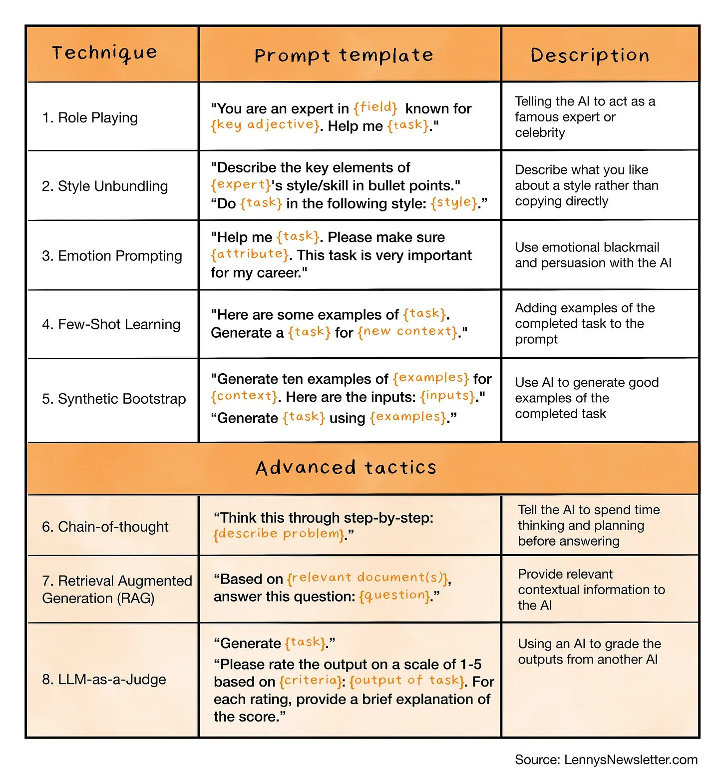 Five proven prompt engineering techniques and a few more-advanced tactics (LennysNewsletter.com)