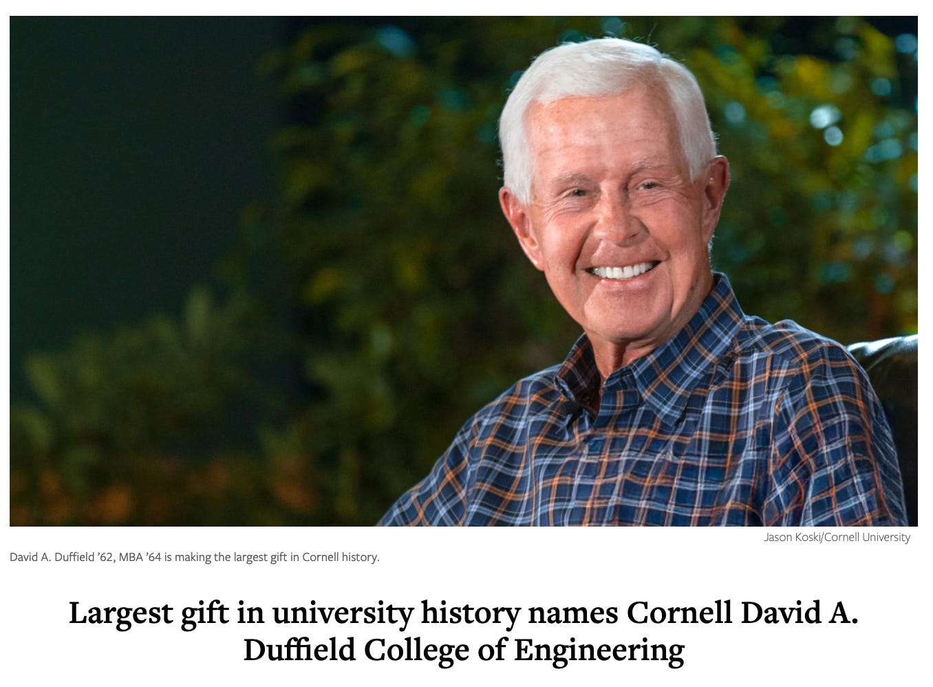 → Why does it matter? Wow! More than $520 million in contributions from Dave Duffield, including a new pledge of $371.5 million and a 2025 commitment of $100 million, combined with previous gifts, will establish the Cornell David A. Duffield College of Engineering. Go Big Red!