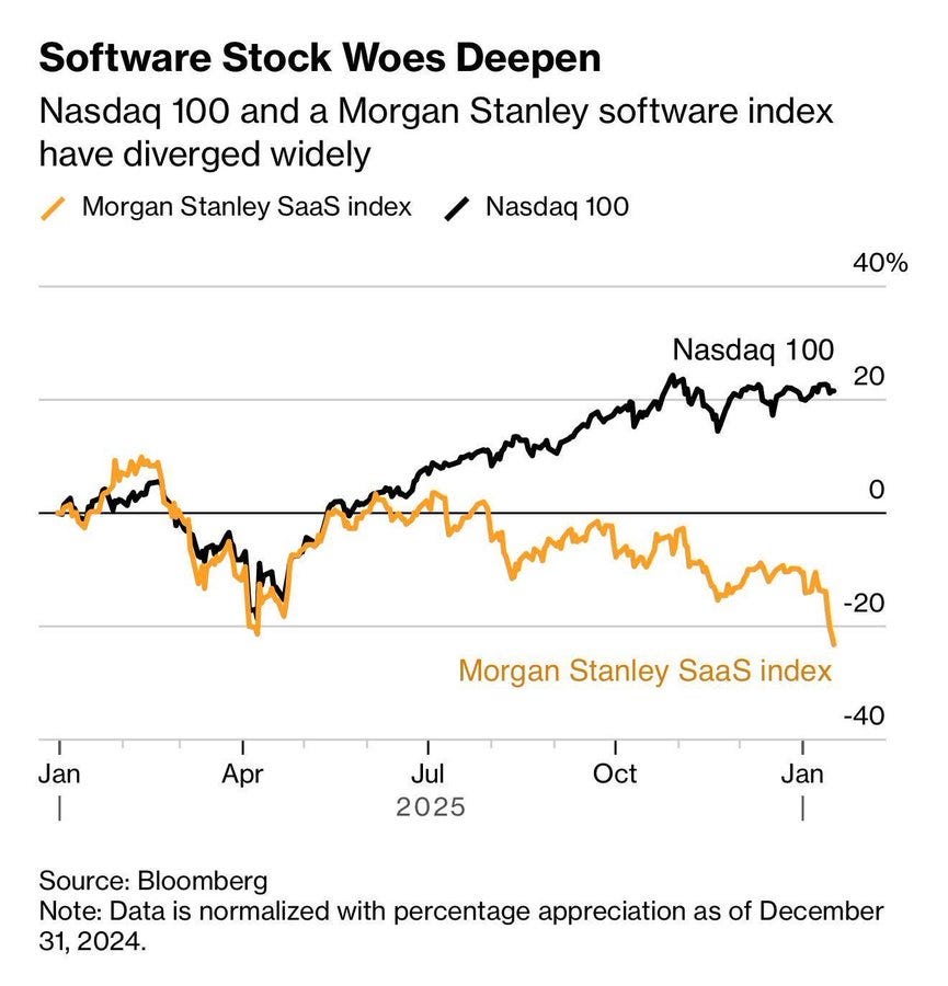 → Why does it matter? It’s an interesting time for SaaS. One clean way to see the scale is the BVP Nasdaq Emerging Cloud Index, which still represents about $2.0T in market cap and trades at an average 7.3x revenue. Cloud software used to be the default public-market compounder, but it keeps trading down under the logic that AI will replicate big chunks of what these companies do. I’m not sure that story holds up in the places that matter. AI will pressure the thin layers, but it also raises the value of the hard parts, distribution, integrations, and the domain data sitting underneath systems of record. Like most mature markets, that feels like a barbell, the giants get even bigger, and the specialists get even more valuable. Perhaps you won’t want to be in the middle.