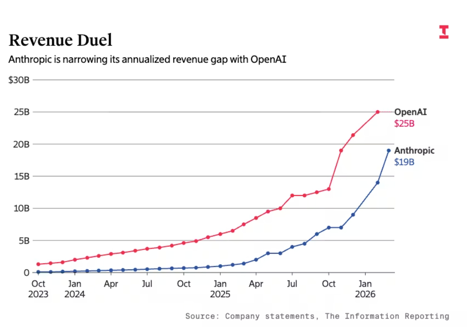 → Why does it matter? The revenue gap between OpenAI and Anthropic appears to be $6B. It may actually be much larger. Anthropic counts gross hyperscaler revenue before paying out its AWS revenue share, while OpenAI reports net revenue after paying Microsoft Azure. Strip out the accounting difference, and Anthropic's $19B annualized figure shrinks materially. If both companies pursue an IPO this year, the SEC is unlikely to let that comparison stand, and the chart you think you are reading today will look very different once the numbers are restated on a common basis.