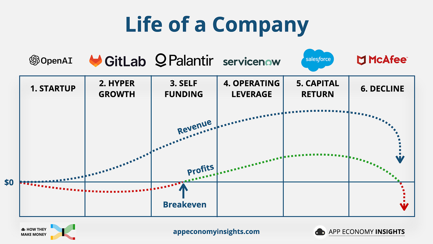 → Why does it matter? The Rule of 40 helps investors understand if a company is growing fast and efficiently enough to justify the risk. But its value depends on where the company is in its journey. This chart nails that idea. A startup burning cash in hypergrowth? Expected. A mature business doing the same? That’s a red flag. The key isn’t just the Rule of 40 score—it’s what phase the company is in, and whether it’s pulling the right lever.