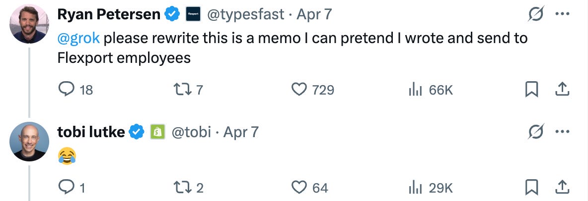 Flexport CEO Ryan Petersen joked online that he wished Grok could rewrite the memo so he could send it to his own team.