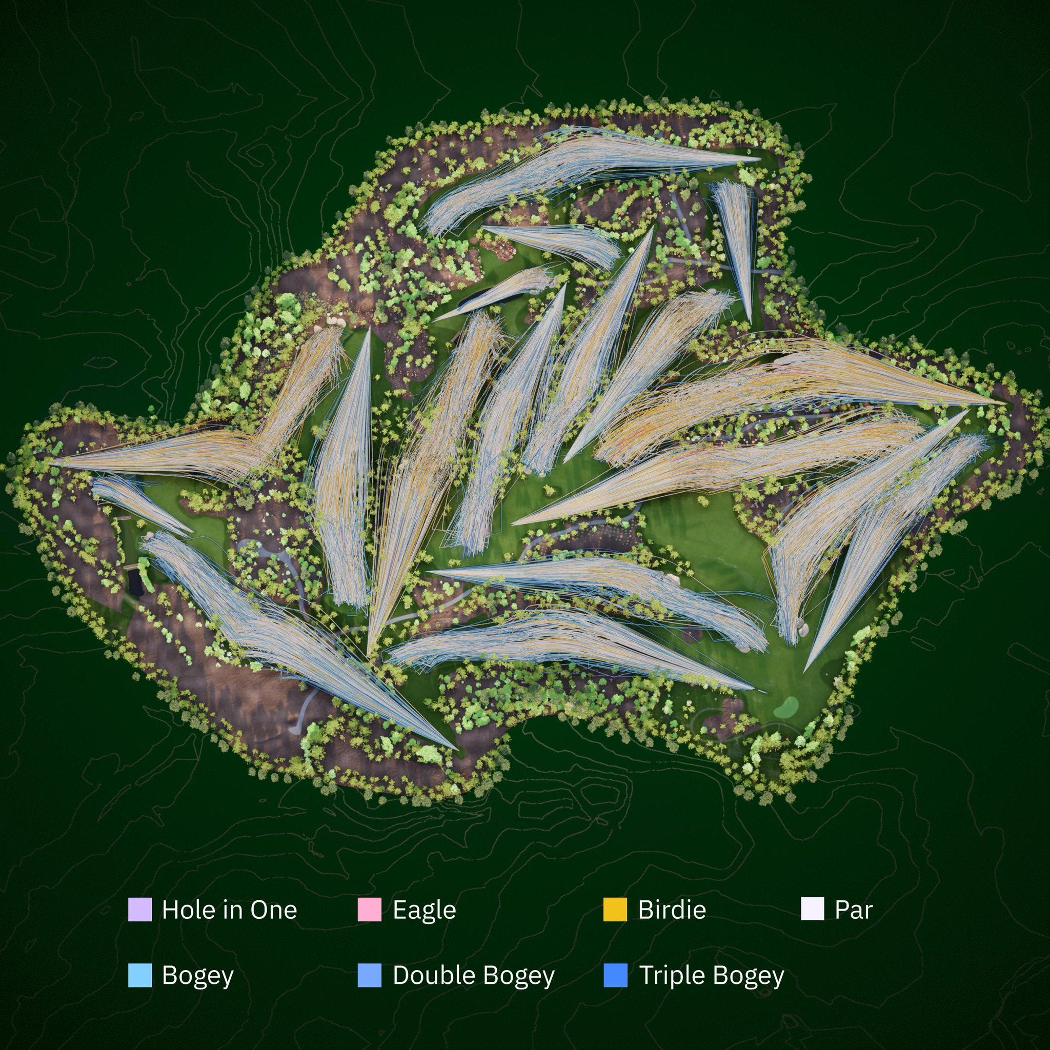 → Why does it matter? IBM tracked every shot at the Masters. The result is mostly blue for bogey. Even at golf’s highest level, bogeys outnumber birdies by a lot. Watching the broadcast, you’d never know.