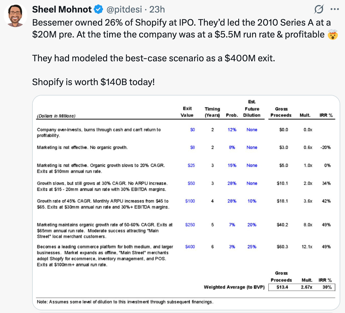 → Why does it matter? Bessemer’s best case scenario for Shopify was $400M! 🤯