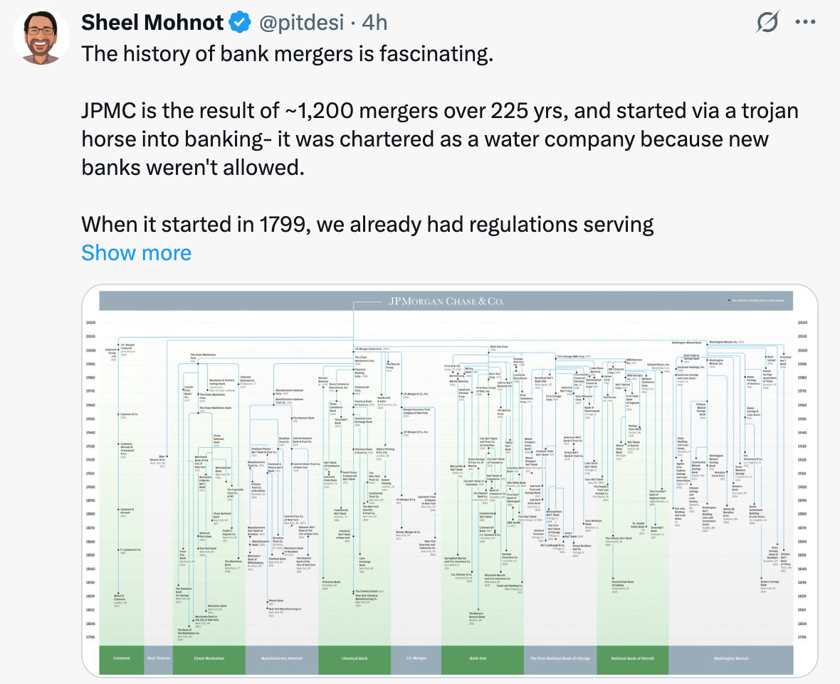 → Why does it matter? In 1799, Aaron Burr couldn’t get a banking charter—so he created a fake water company during a yellow fever outbreak and used the funds to start a bank. The fine print gave him legal cover. Alexander Hamilton, who ran the country’s financial system, was furious. Their rivalry got so heated it ended in a literal pistol duel. Hamilton died. Burr’s bank survived. Two centuries and 1,200 mergers later, it’s JPMorgan Chase. The bank still owns the dueling pistols. 🤯